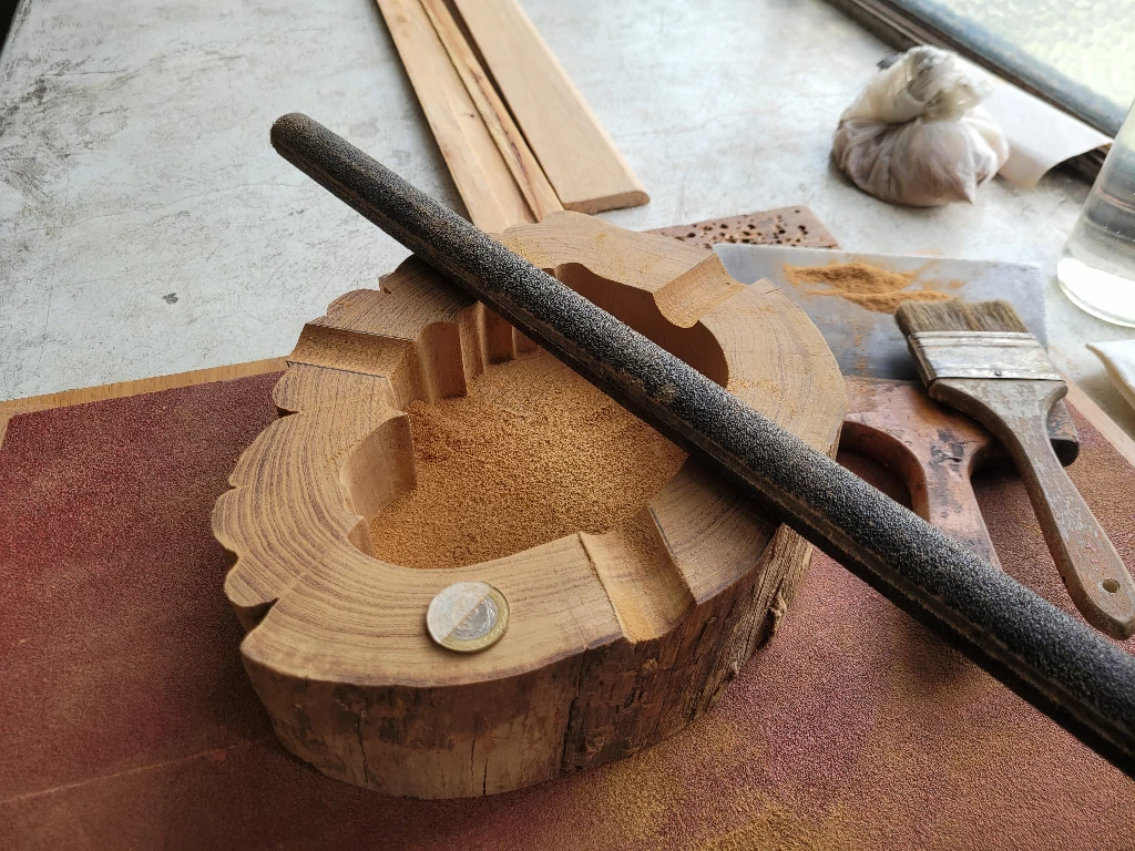 PRIMEROS DIALOGOS CON LA MADERA PARA ESTABLECER EL PROYECTO – DISEÑO y MARCADO DEL DISEÑO EN LA MADERA PREPARADA